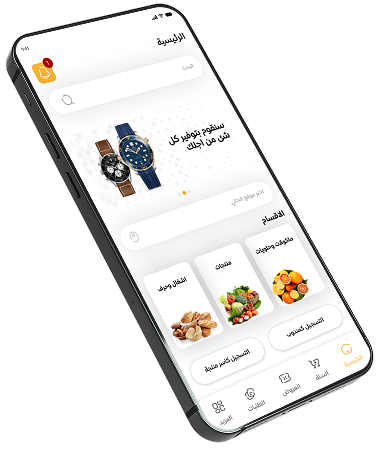 استعراض اسلايدر الاعلانات والاقسام المتاحة بالتطبيق